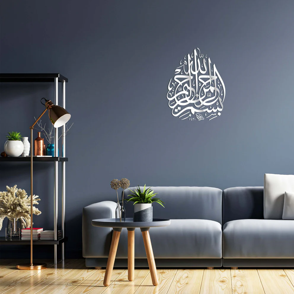 Expertly crafted from high-quality acrylic, this piece blends the timeless spirituality of the Basmala with modern interior design. The intricate Arabic script is laser-cut with precision, creating a sophisticated 3D silhouette that adds elegance and serenity to your living space.