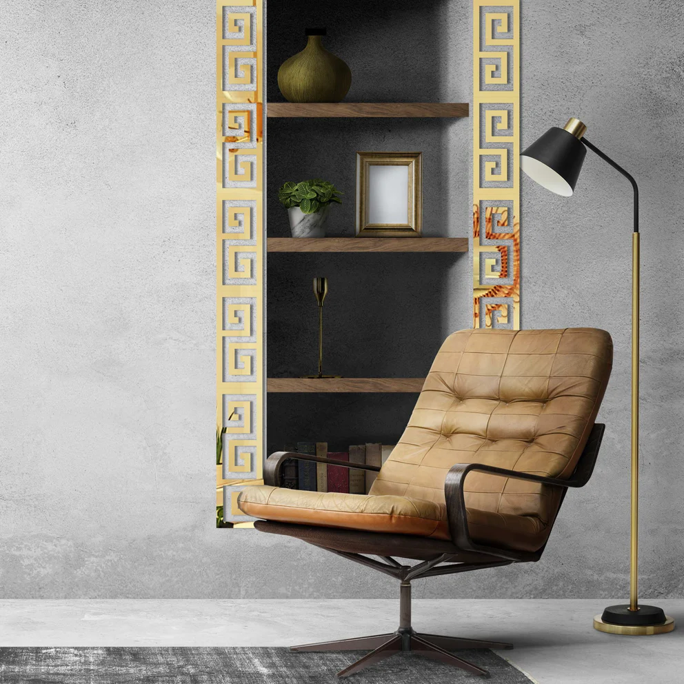 Luxury Greek Key Acrylic Mirror Wall Border – Self-Adhesive Gold Trim for Home Decor